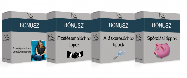 Maga a BÓNUSZOK anyagrésszel, ha sikerül a rég áhított fizetésemelés, rögtön akár a fizetésedet 10%-al meg tudod növelni vagy végre sikerül elhelyezkedned egy olyan munkahelyen, ahol nem csak többet kereshetsz, de még szereted is!